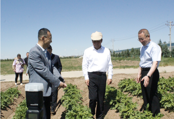 在試驗田前,冀福善向段志強一行介紹,公司為科學(xué)種植,合理輪茬,從2015年開始進入燕麥產(chǎn)業(yè),實施“馬鈴薯+燕麥”雙輪驅(qū)動發(fā)展戰(zhàn)略,在察右中旗成立子公司——內(nèi)蒙古陰山優(yōu)麥?zhǔn)称酚邢薰?。目前,陰山?yōu)麥已完成投資2.4億元,年產(chǎn)2萬噸燕麥香米、2萬噸燕麥片、2000萬支燕麥杯、6000噸燕麥粉(莜面)和2萬噸藜麥米加工生產(chǎn)線已建成并投入使用,陰山優(yōu)麥?zhǔn)恰白灾螀^(qū)農(nóng)業(yè)產(chǎn)業(yè)化重點龍頭企業(yè)”、“自治區(qū)扶貧龍頭企業(yè)”。同時,公司依托自身在加工薯種植管理技術(shù)、產(chǎn)品質(zhì)量、倉儲能力等方面的優(yōu)勢,于2019年初在察右中旗成立子公司——內(nèi)蒙古蒙薯食品科技有限公司,計劃投資1.5億元,建設(shè)“年產(chǎn)8000噸低溫油炸薯條及2000噸果蔬脆片加工項目”,全力打造烏蘭察布市地標(biāo)性產(chǎn)品,創(chuàng)建全國大的低溫油炸薯條、果蔬脆片深加工企業(yè),已于今年投產(chǎn)。